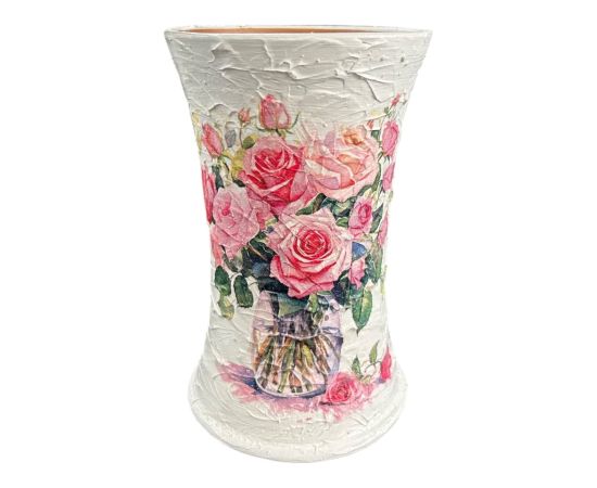 Vază Ceramică pentru Flori – Buchet de Trandafiri Roz, 20 cm